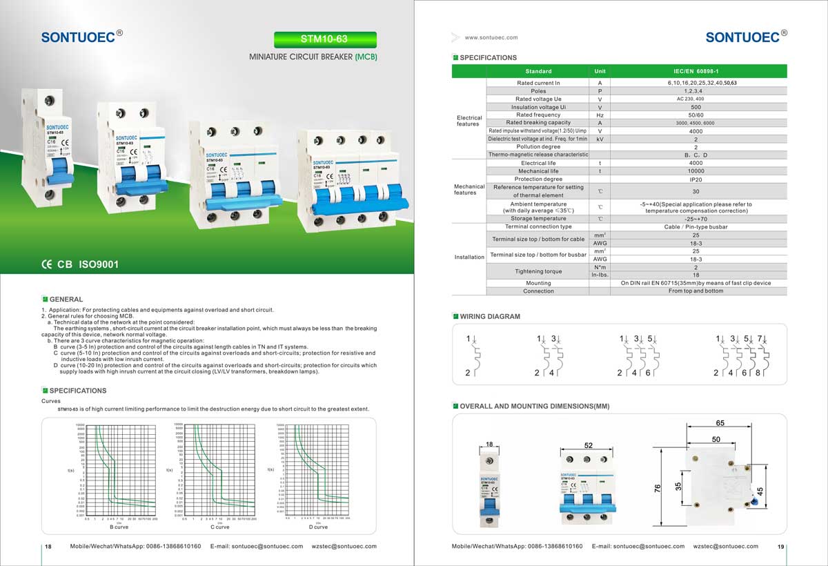 SONTUOEC איז איינער פון די כינעזיש סאַפּלייערז / מאַניאַפאַקטשערערז וואָס ספּעשאַלייז אין די פּראָדוקציע פון פאַרשידן קליין עלעקטריקאַל אַפּפּליאַנסעס STM10-63 סעריע הויך ברייקינג מיניאַטורע קרייַז צוימען האט די פֿעיִקייטן פון סטרוקטור אַוואַנסירטע, פאָרשטעלונג פאַרלאָזלעך, ברייקינג קאַפּאַציטעט הויך, אויסזען עלעגאַנט און זייַן שאָל און טיילן זענען געמאכט פון מאַטעריאַל מיט פּראַל קעגנשטעל, שטאַרק פלאַם-ריטאַרדאַנט שטריך. עס איז פּאַסיק פֿאַר מאַכט סיסטעם פון 50 אָדער 60 אָפטקייַט, Ue 400V און ווייטער, Ui 63A און ווייטער. עס קאַנפאָרמז צו די סטאַנדאַרדס IEC60898.1 און GB10963.1